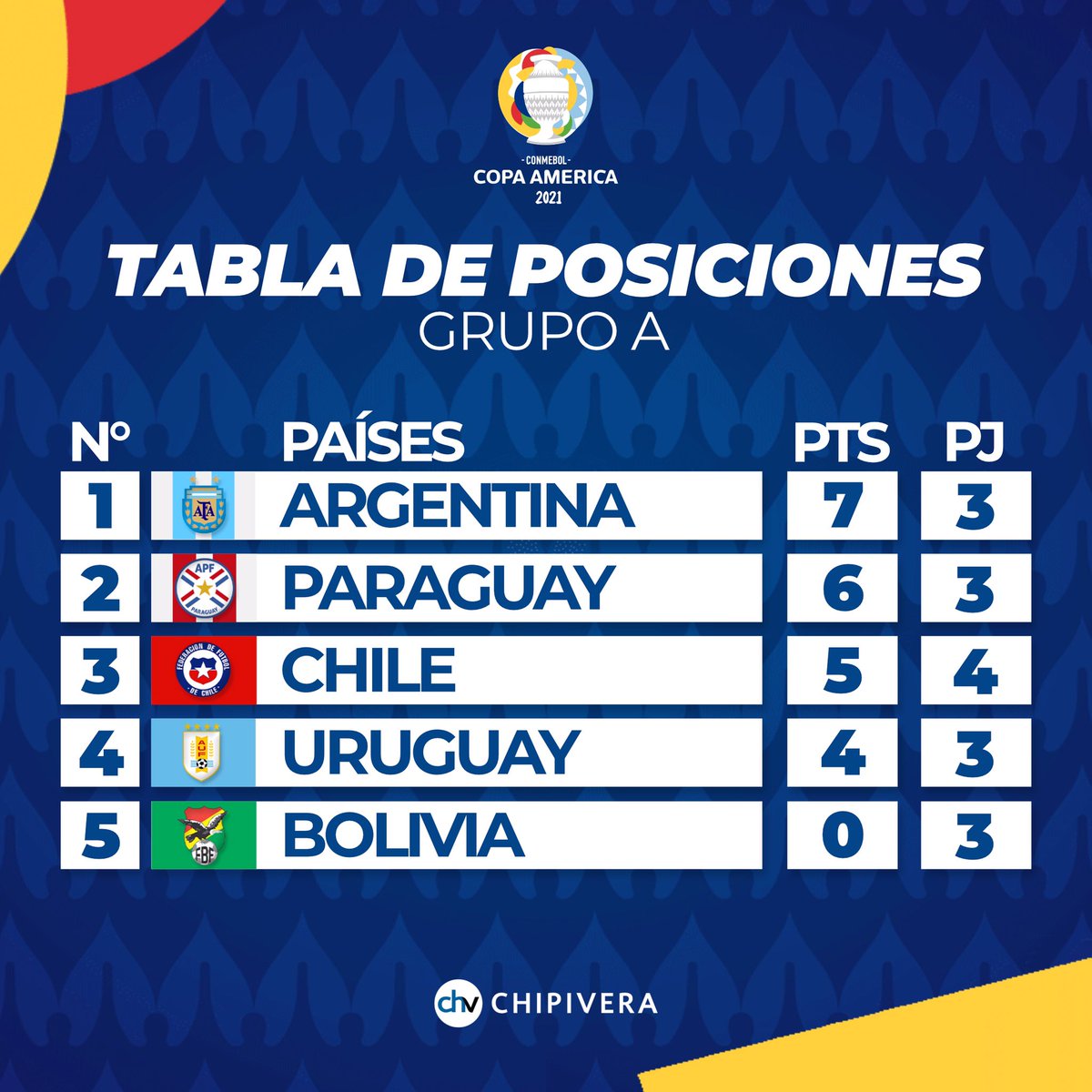 Por supuesto, tenemos todo el calendario de la copa américa 2021 listo para que no te pierdas nada. En el grupo a, argentina ya estaba clasificada desde la última jornada y a ellos se les han unido chile y uruguay. Jadwal siaran langsung tv copa américa 2021. Daftar stasiun tv penyiar copa américa 2021. Colombia perdió y así quedó la tabla del grupo b.