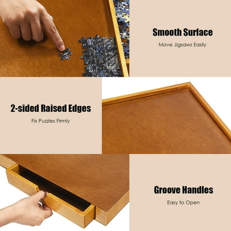 Costway 1500 Pcs Wooden Jigsaw Puzzle Table Plateau Smooth Work Surface W 4 Drawers Walmart Canada from i5.walmartimages.com Jigsaw puzzle tilting table for 1000 pieces puzzles,gift for puzzle enthusiast. Wooden folding dining and puzzle table in natural birch finish. By keeping the top on, this puzzle table can conveniently be used as a portable office table, card table or even a game night surface. Your back will notice a big difference! A foldable table or collapsible table always come in handy when you are in need of extra table space. Table legs fold under the table to make storage more convenient and for better portability. Jigsaw puzzle tilting table for 1000 pieces puzzles,gift for puzzle enthusiast. A wonderful line of beautiful, productive puzzle tables and tableau for you and your puzzle loving friends!